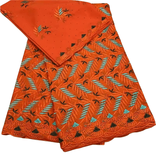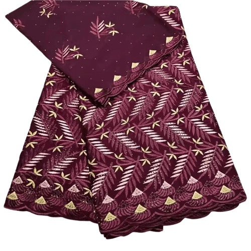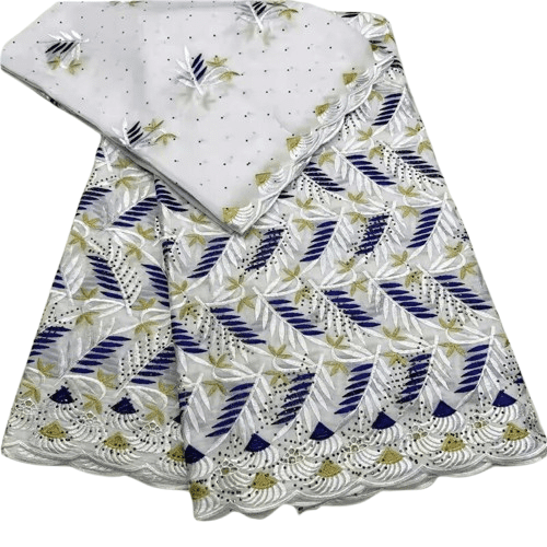 Magnifique tissu brodé avec des motifs élégants et des lignes régulières, accompagné d’une base finement ondulée ornée de détails scintillants. Idéal pour vos tenues traditionnelles, cérémonielles ou élégantes.